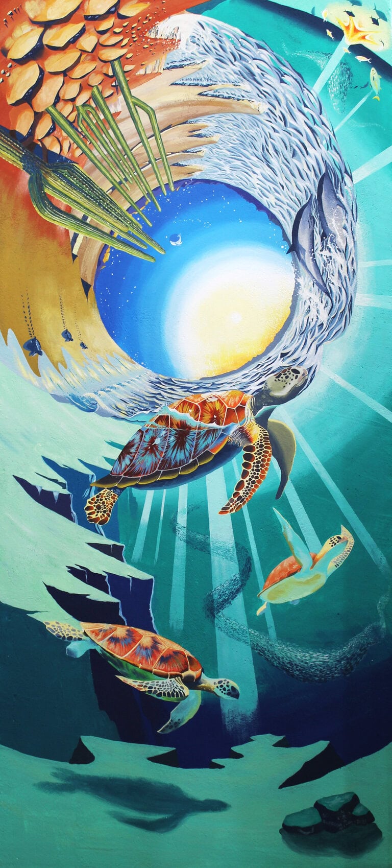 The mural is both the beginning and the outcome. The beginning being the product of an idea that was born in the mind, possibly processed with sketches, or possibly the idea jumped directly to the wall. The outcome is the awakening of the idea in the mind of the viewer.