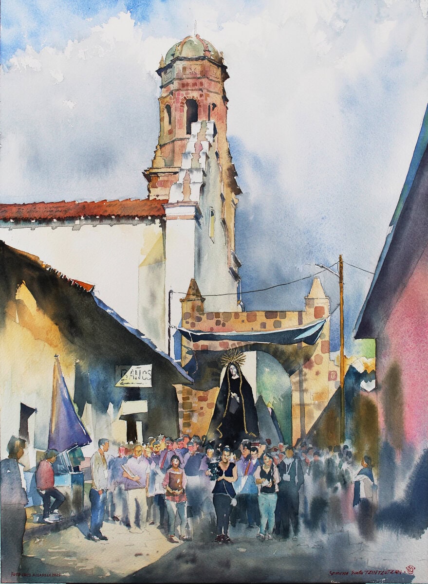 Watercolor has meant for me the ideal medium to express what the spirit cannot do through words. To every place I travel, I carry with me pigments, paper, and brushes, since there will always be a place that awakens in me love and respect for this life.